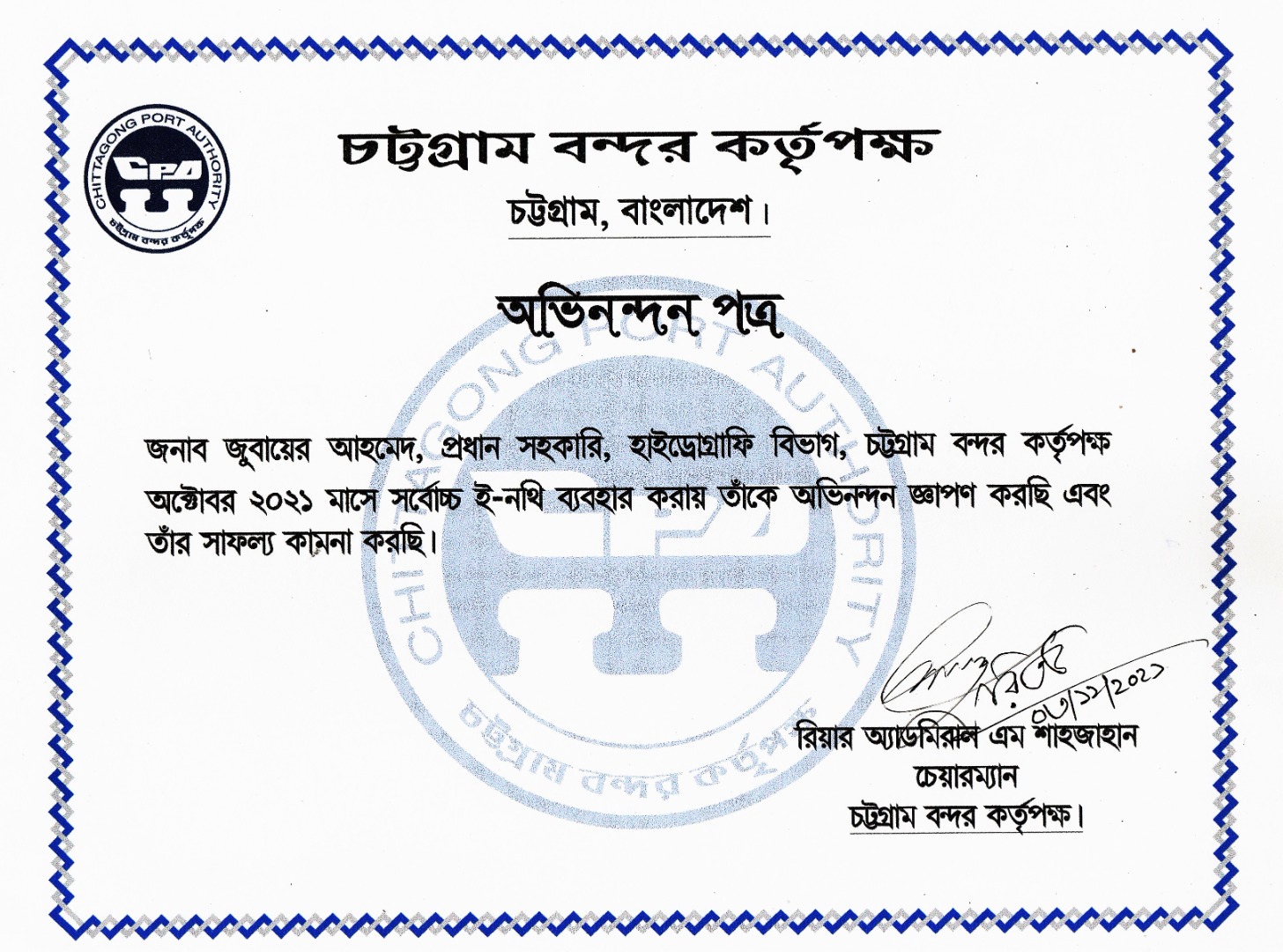 জনাব জুবায়ের আহমেদ,